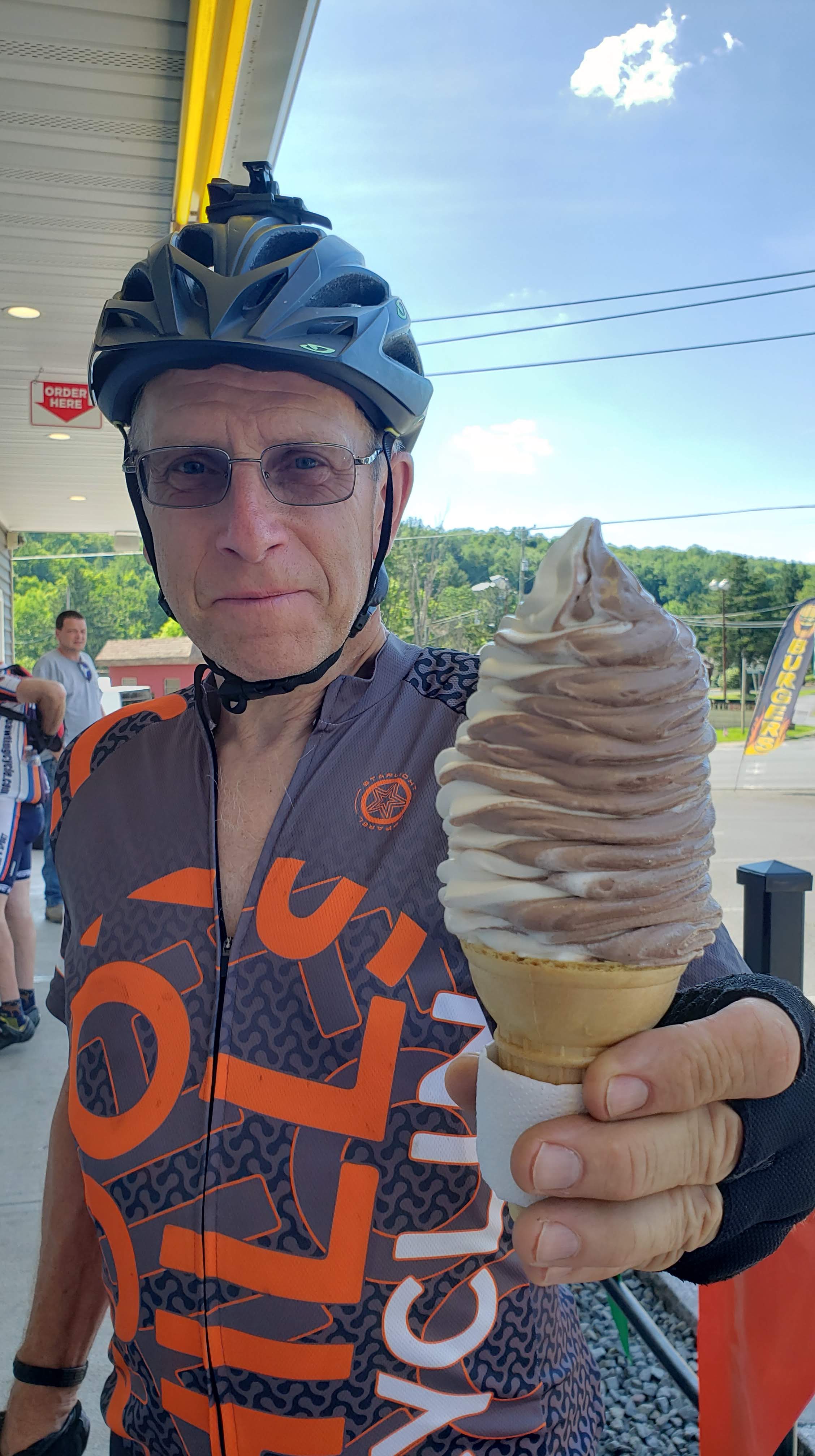 Maybe the best part of touring is ice cream stops. We were hot and sweaty and in need of inner cooling. A massive twist cone was just the ticket to keep moving. We’re at mile 82 with 36 hilly miles to go. By mile 101, we’re all cooked again and just want to get to our next overnight room but we have four more “bumps” to conquer before being rewarded with a 5-mile downhill into Windham. From Windham, it’s only another 3 miles to our room. We finally get cleaned up and head next door to Vesuvio Restaurant in Hensonville. We ate like royalty and after a long day, it felt good to put real food in the belly.