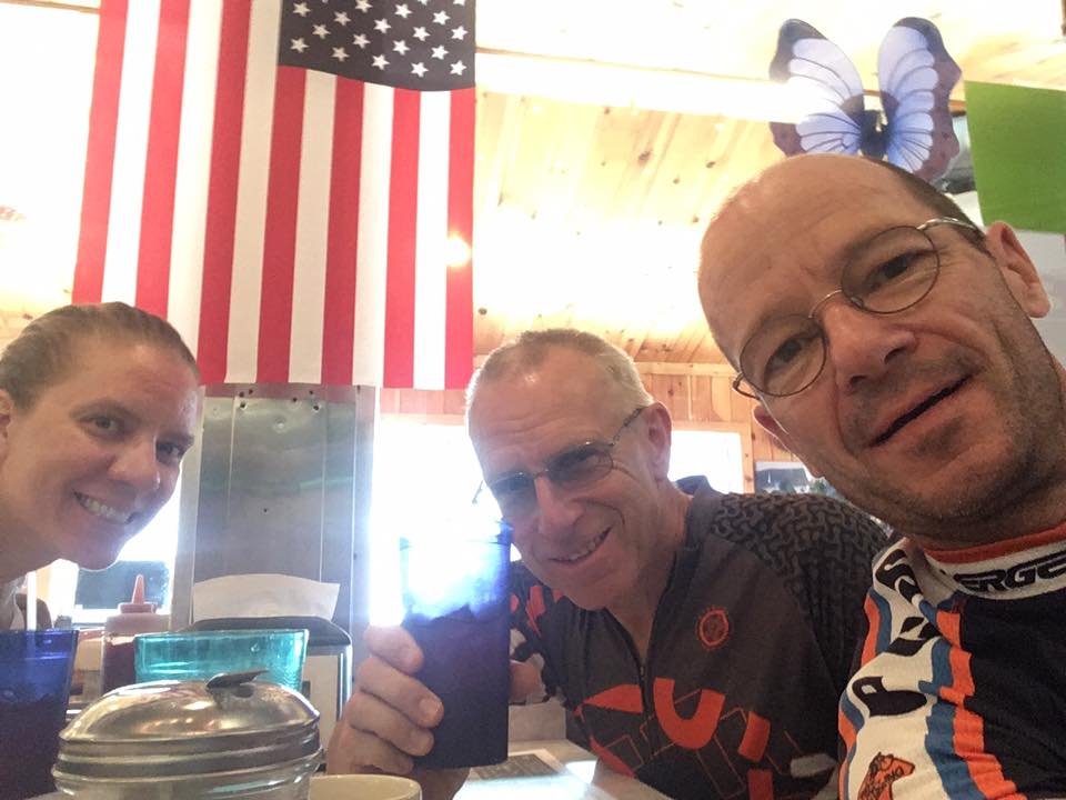 We woke around 6:30am and headed down the street to Nana Gail’s for breakfast, filling our bellies once again with eggs and bread and bacon for the guys. The day was overcast with a 50% chance of thunderstorms so we made sure our rain gear was easily accessible should we find ourselves in a downpour. A short climb out of the Windham area gave way to an epic 15-mile descent back to the Hudson River. We crossed on the Rip Van Winkle Bridge and made our way to Copake, where we would stop for lunch at Dad’s Diner. Our energy is high because we’re on our way home.