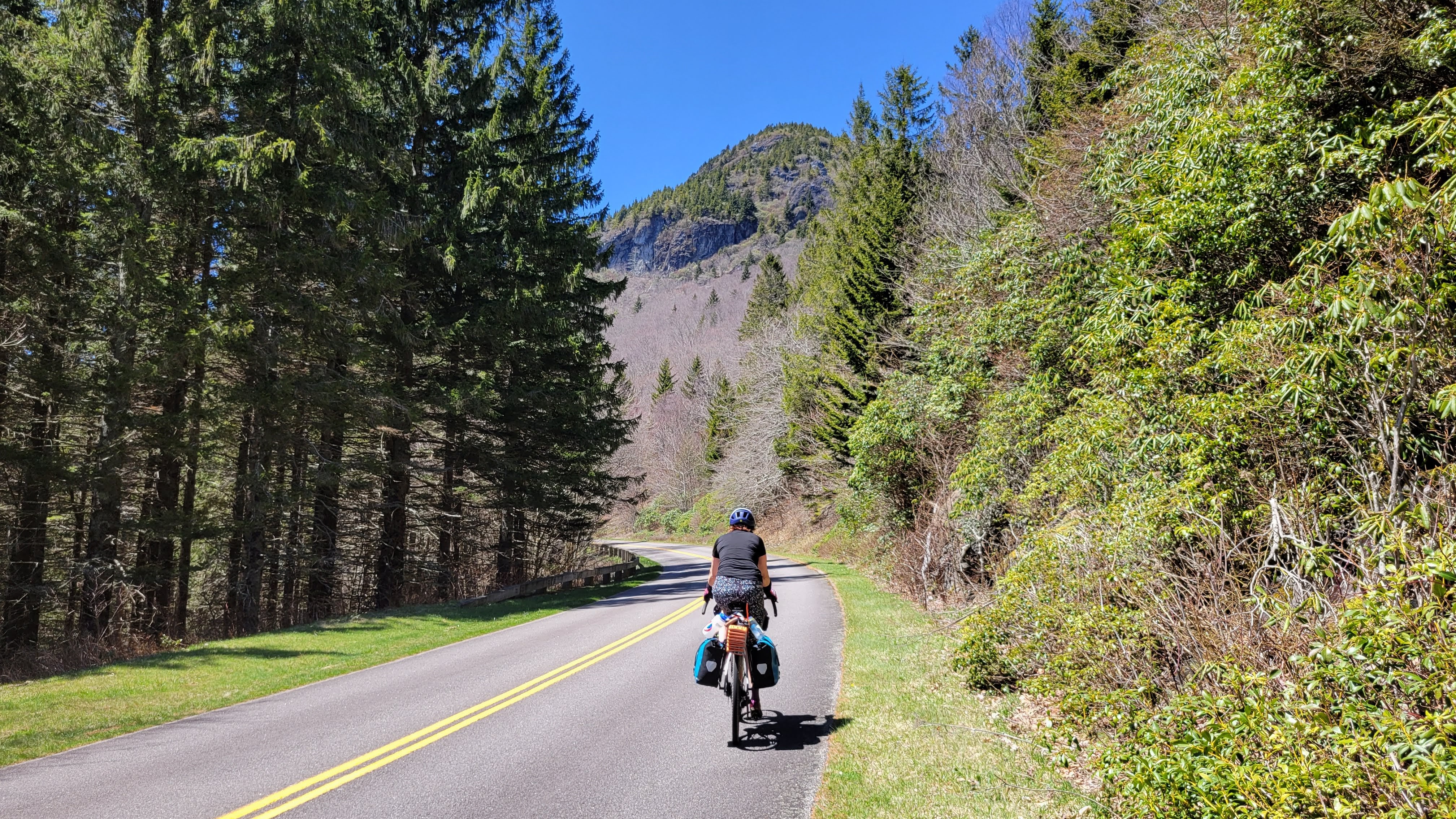 A cold, crisp sun greets us on the third morning and we’re a little slower-going. Today is the biggest climbing day and our legs are already feeling the subtle stiffness of the previous three days. Today is expected to be a few degrees warmer and sunnier, and we are optimistic to get to Craggy Gardens for lunch.