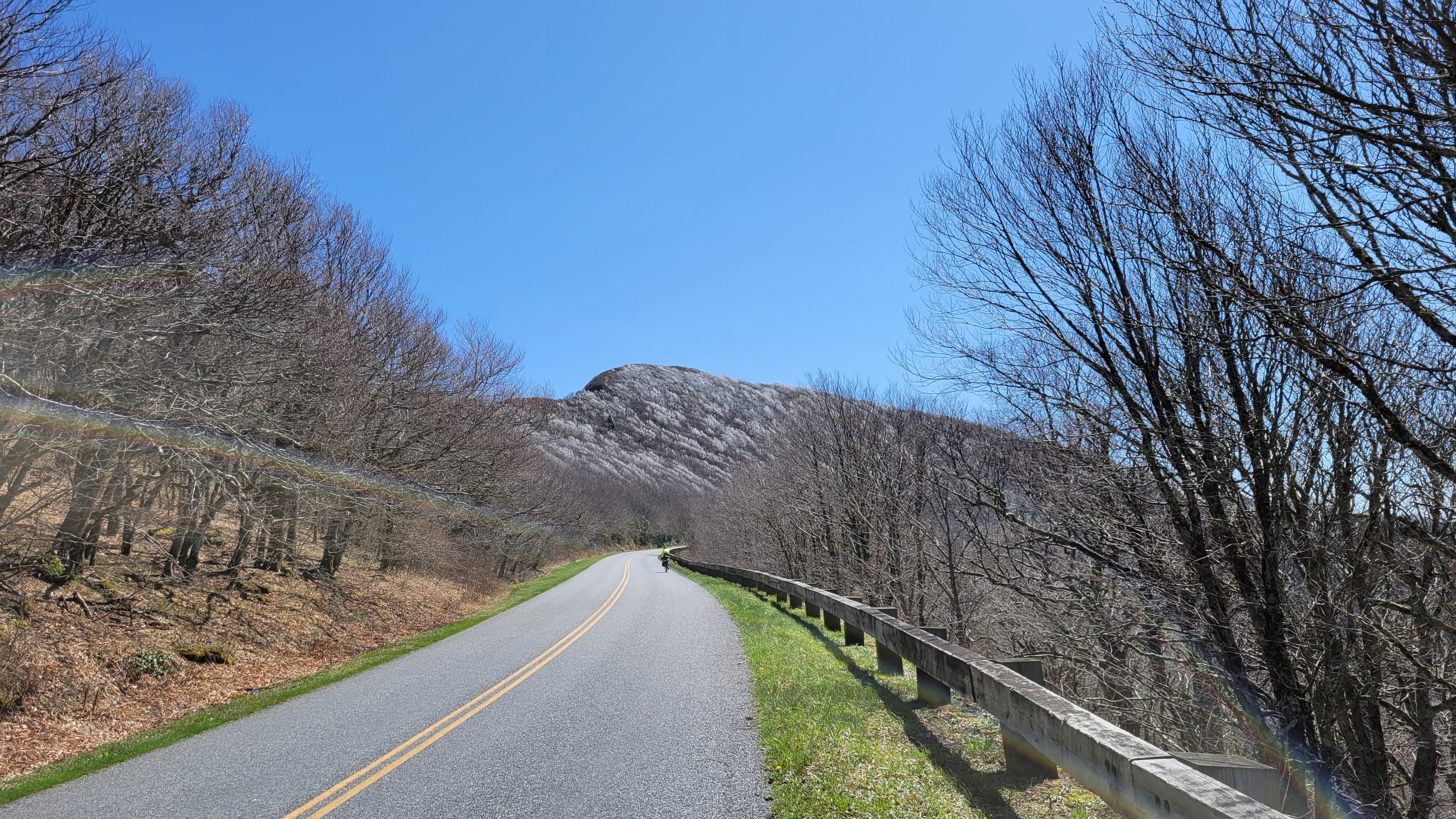 - Turning onto the Blue Ridge Parkway and knowing we still have 2 more miles to ascend around 800′ (but at least it’s paved)