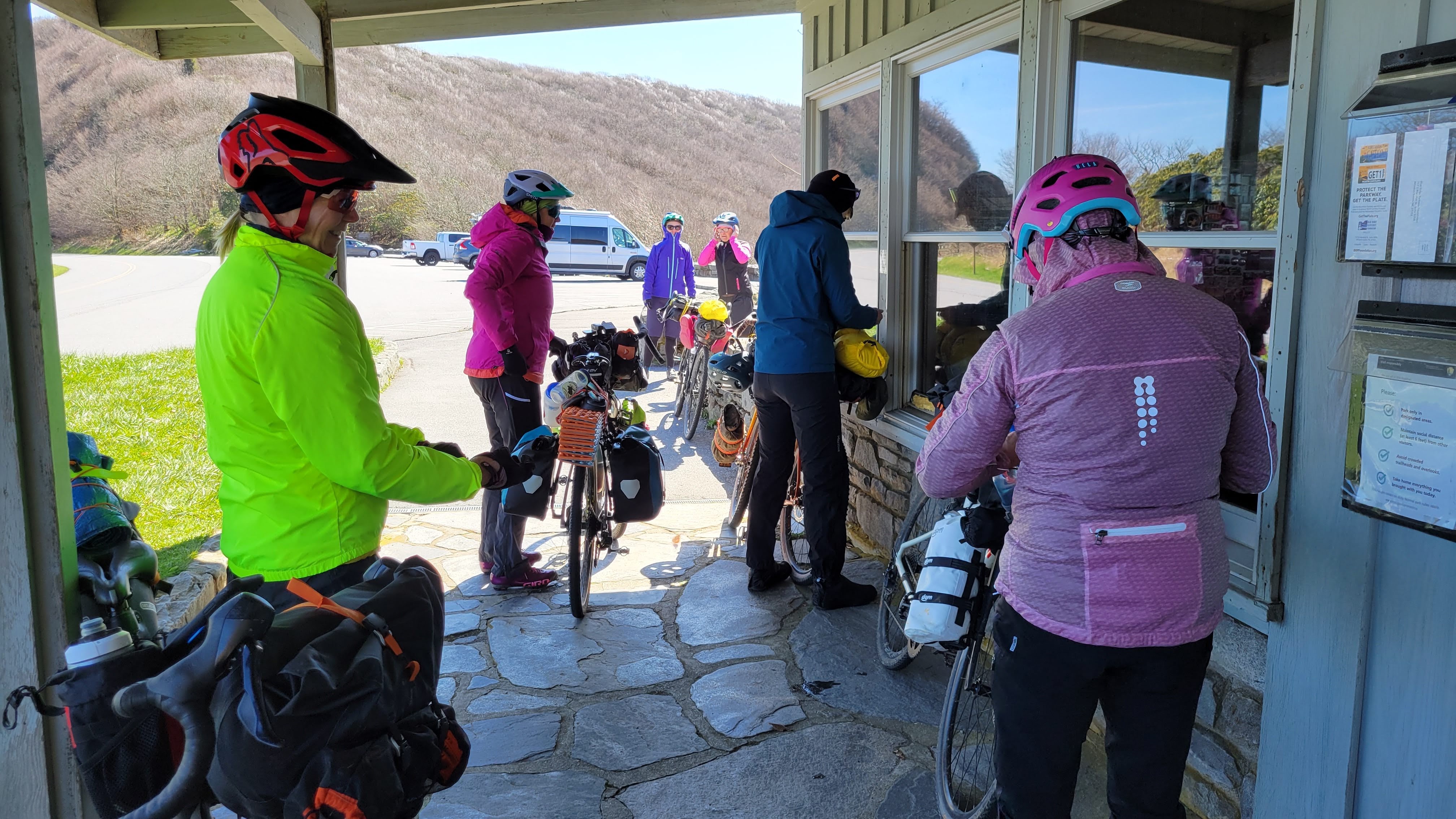 - Stopping for lunch at an overlook in a sort-of protected place from the wind