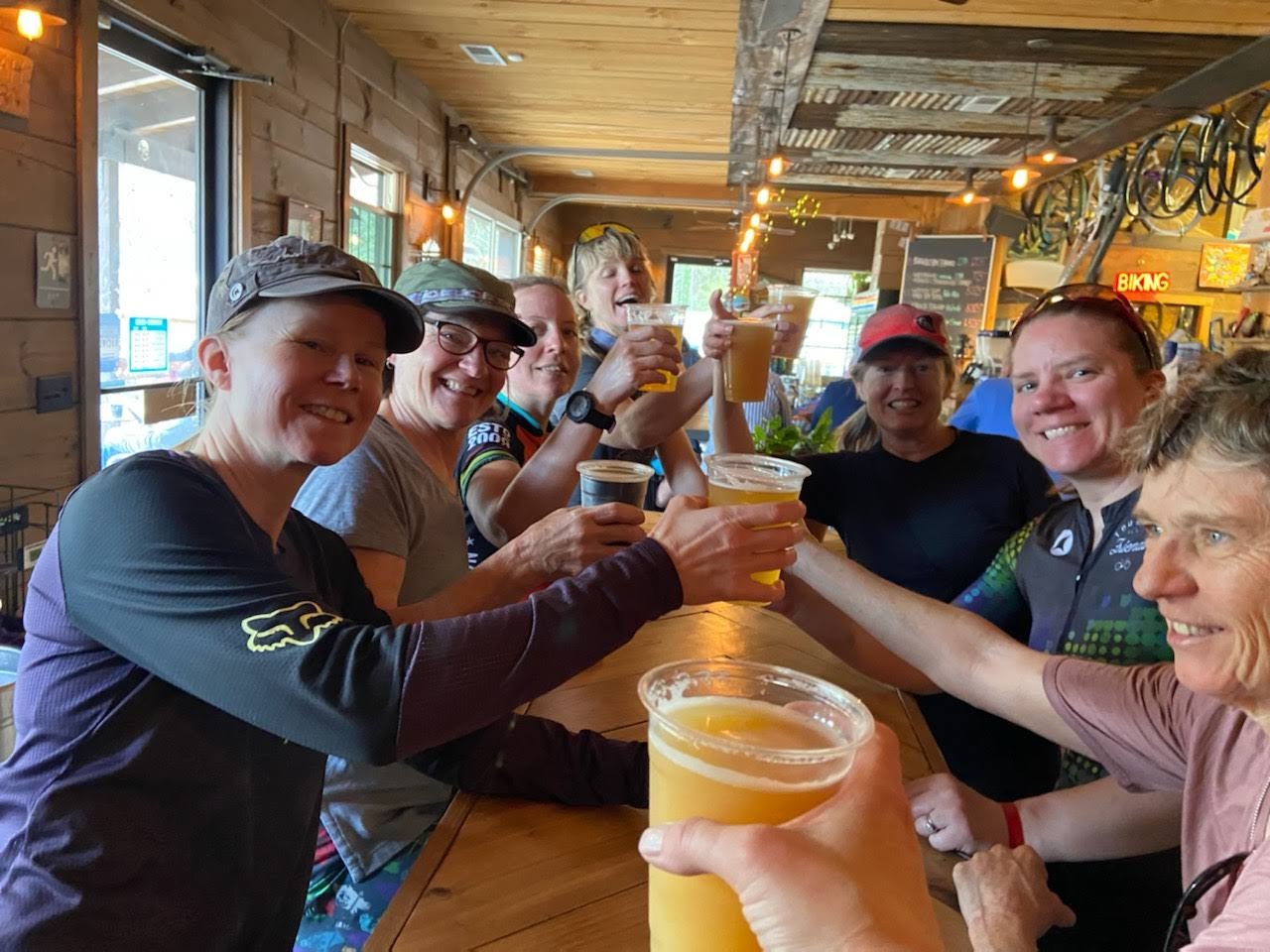 For me, the breweries are a means to get others to join in the fun and six of our women friends who are brand new to loaded bikepacking signed on. As a non-beer drinker, I’m just here for the dirt, the views, and the joy of being out in the world on my bike.
