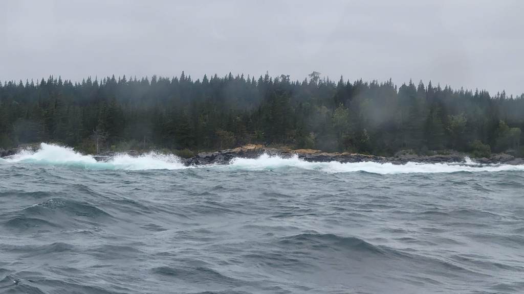 The first 5 hours of this portion were lovely – calm waters as we sailed the smooth water along the western coastline of Isle Royale. We had a pick up at one of the remote docks and sailing in McCargoe Cove was absolutely magical. (Excuse the noise – we were sitting in or directly behind the engine room)