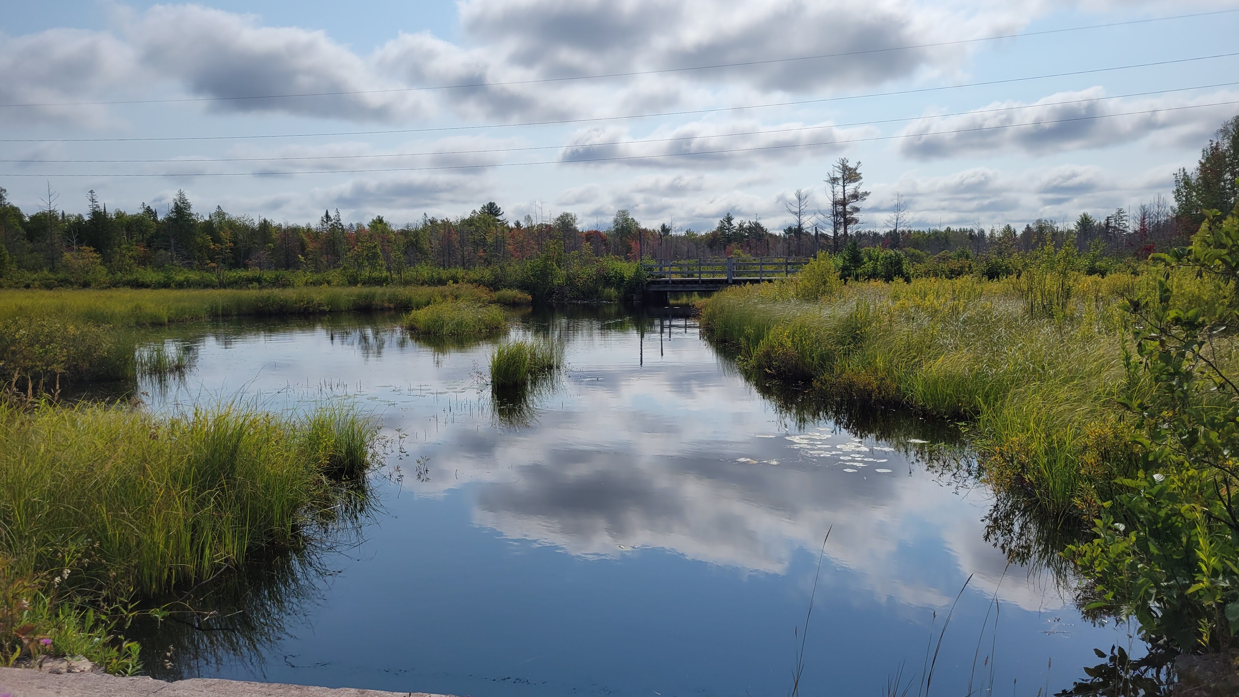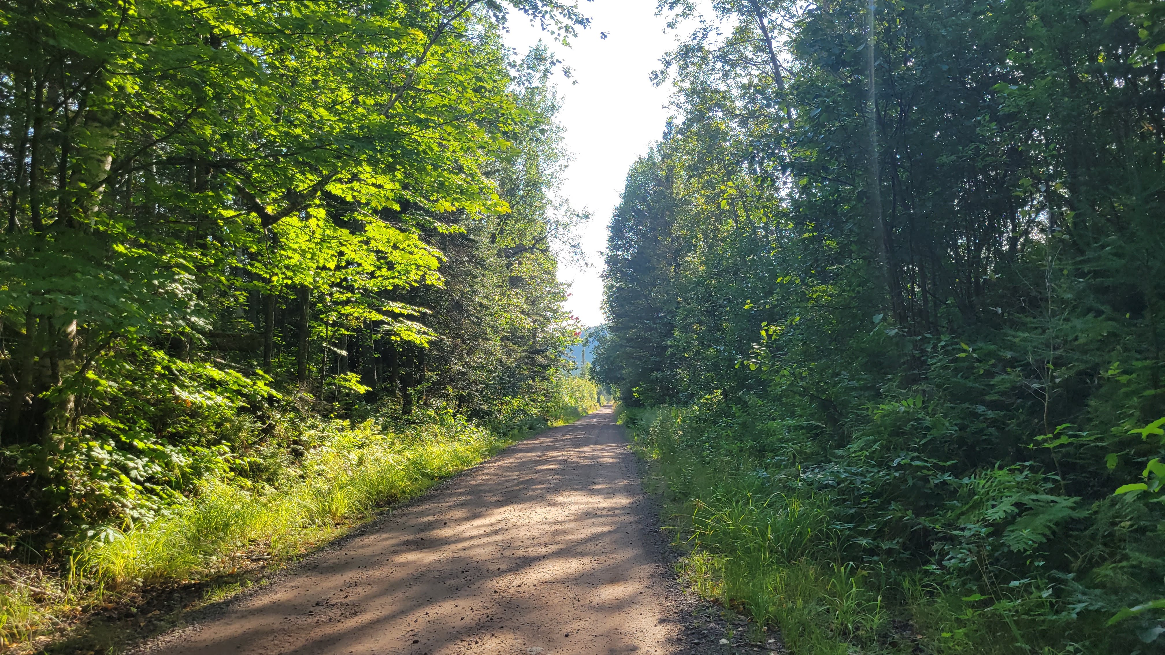 • Feeling a bit tired from the extra long day, we decided to reroute to a more direct way to our next campground. We found some nice quiet dirt backroads, spent some time on US41, crossed the bridge at Houghton, and enjoyed lunch by the canal before climbing out and making our way to the Bill Nichols Trail. It has moments of hardpack but far more chunky loose gravel, random sand pits, and abundant shade.