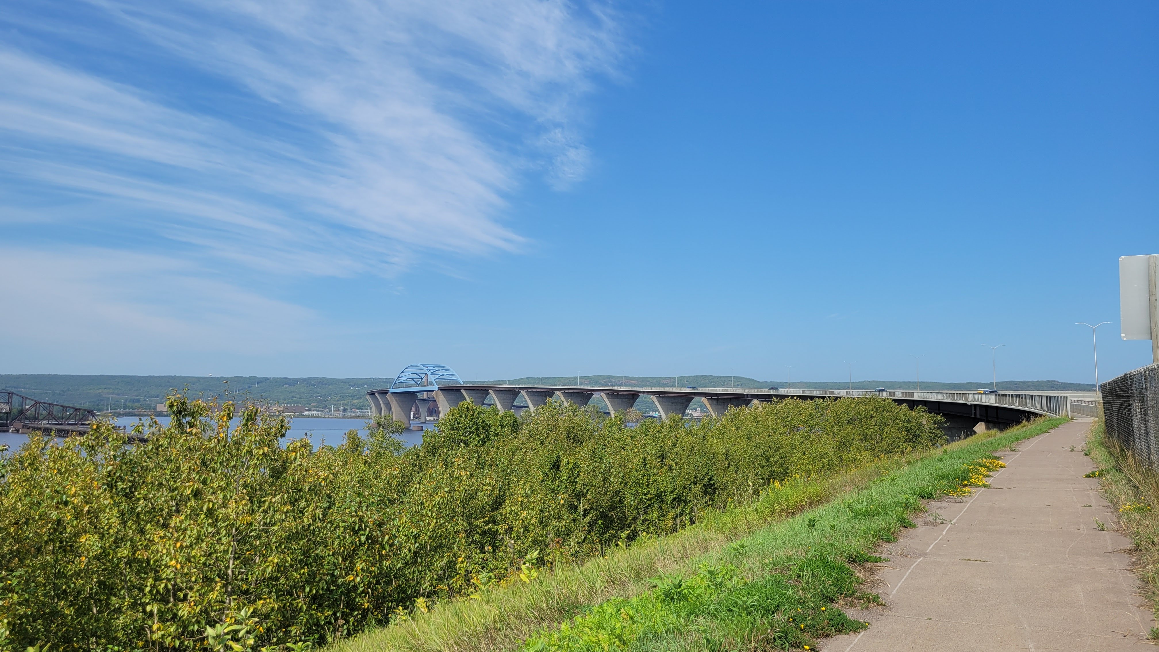 In the late morning, we set our way through Duluth on the Cross-City Trail, which led us to the heavily populated Canal Park. The bike path was lovely other than the multi-use path over I-35, which was absolutely terrifying to ride across.