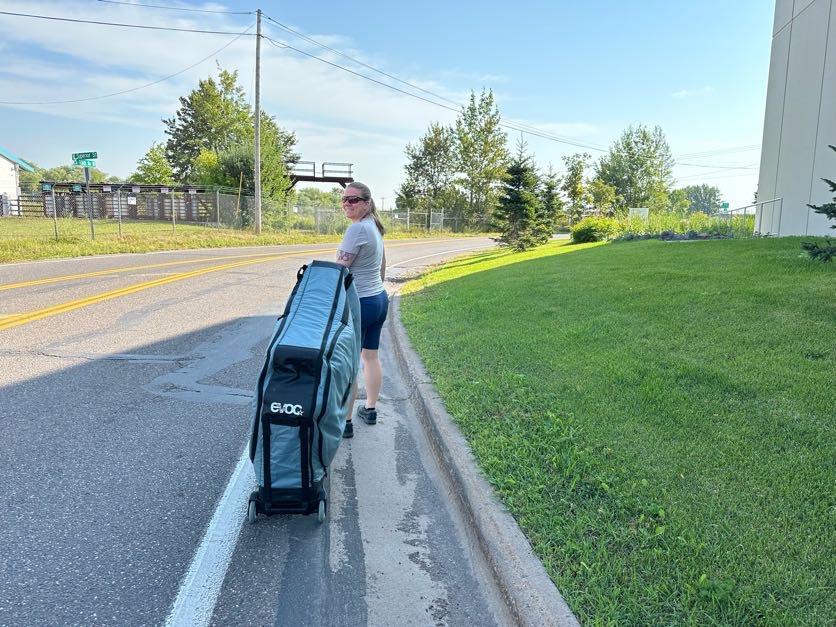 The next morning we had to get our bike bags and suitcases stored. We had arranged with the local bike shop, Twin Ports Cyclery, so we walked our bike bags up to the shop (Denis, the owner, was there and had spent time living in Colorado Springs, which we all bonded over) and then walked to Whole Foods Co-Op to pick up last minute snacks and lunch. All this meant we got a much later start than intended. And …. it was hot.
