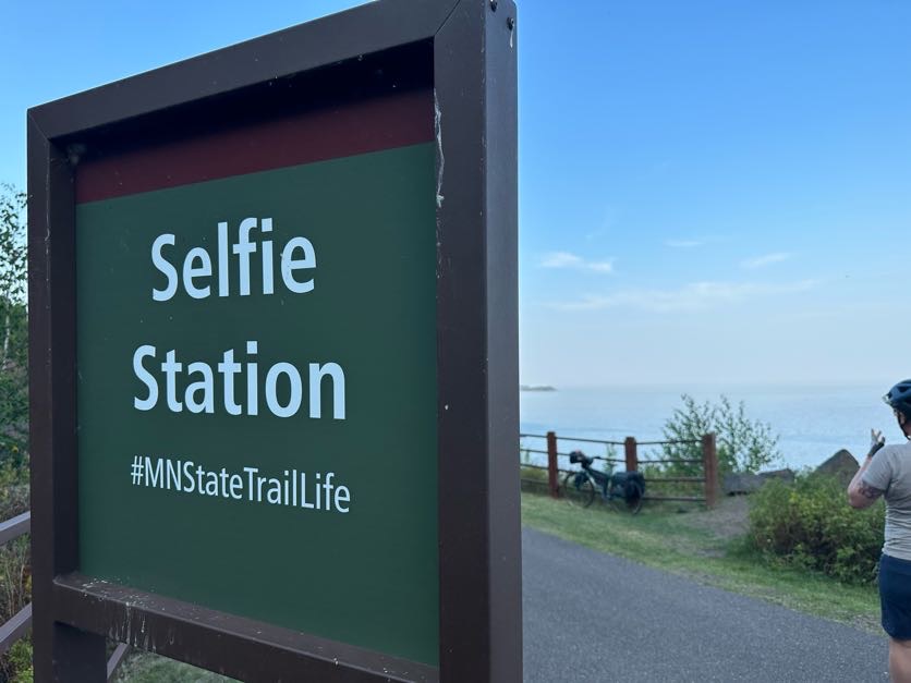 • One mile before we get to the bike path on the bridge to Duluth, a woman stops at a stop sign and then proceeds even though we were entering the intersection and have the right of way. Her passenger is yelling at her to “stop, bikes!” She does, in the middle of the intersection, but then starts slowly rolling towards us as we pass in front of her. I yell at her “YOU CAN STOP NOW. YOU CAN STOP.” Literally 2 miles from the end of our epic adventure and we are almost hit by a careless driver. We were certainly in more danger in towns and cities than we were out on the country roads.