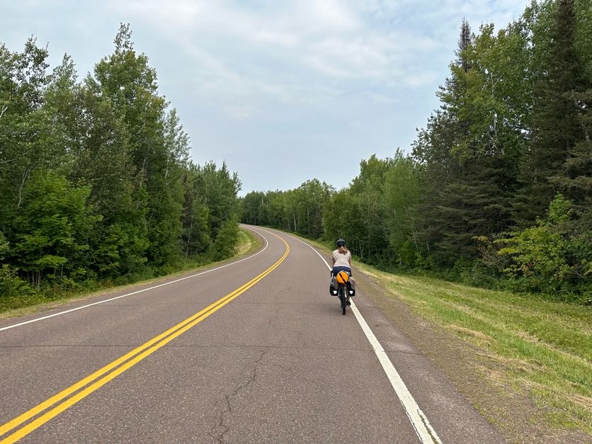 Then we began to climb out of the Duluth area and the ride started to feel real. The roads were fairly exposed with little tree cover, so we stopped a few times to cool off, drink water, and eat snacks. The climbs overall were never onerous – relatively nice 2-3% grades for no more than a few miles – but when hauling 40 pounds of gear on your bike, it is more of a marathon than a sprint.