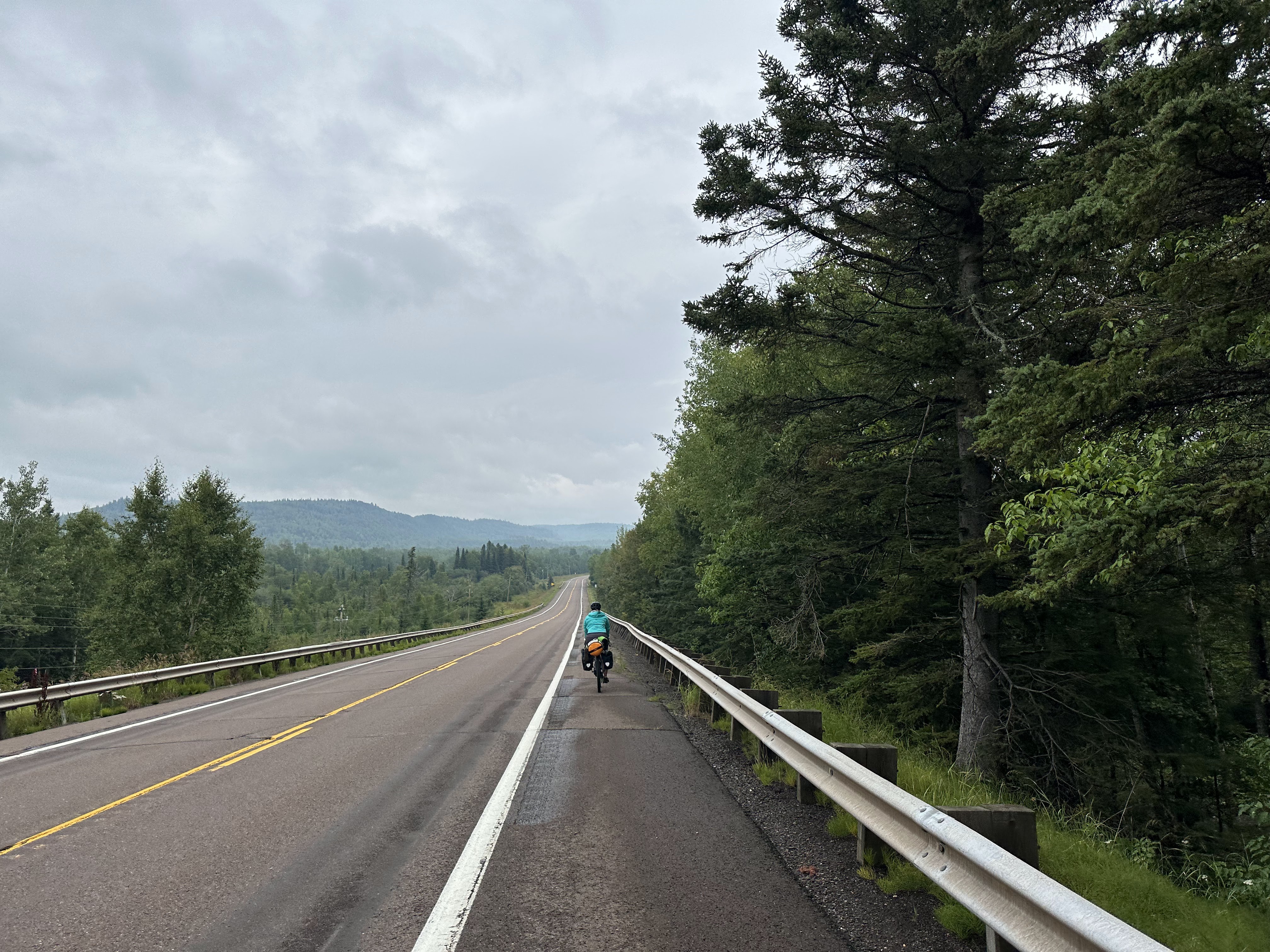 • Pedaling out of the Porkies the next morning and making our way to our layover in Ironwood.