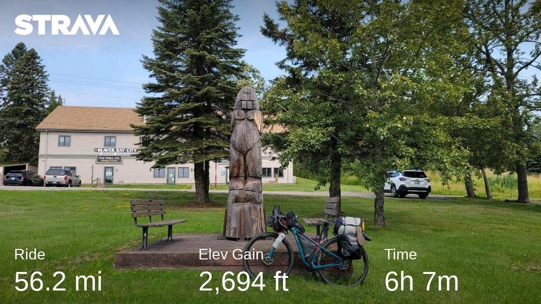 • Stopping in Beaver Bay for snacks and more water, relaxing in the shade by a giant beaver statue