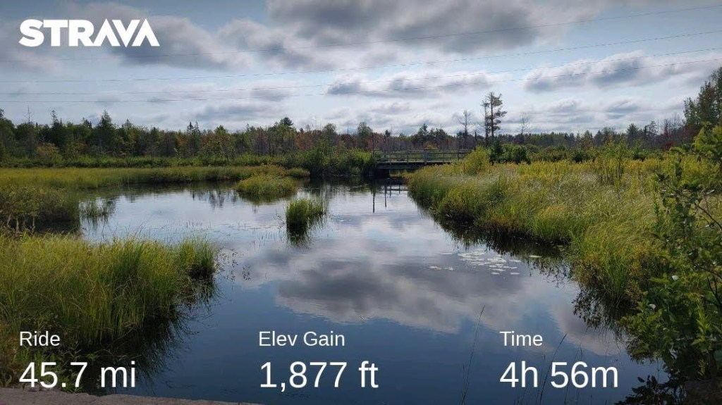 • Getting to a turn onto singletrack and NOPE’ing it. We ride the rustic road up the the County Road and head west on the pavement.