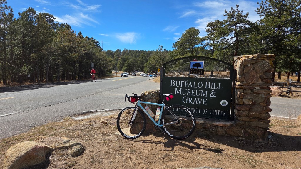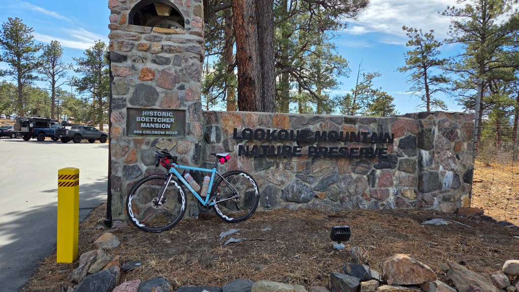 Lookout Mountain is another accessible climb in the metro area – 4.5 miles with 1,270′ climbing with an average of 5% grade. The steepest part is the first mile and the short switchbacks further up the road. I took my time and some pictures going up. The last time I’d ridden this (and the first time ever) was during the Golden Gran Fondo back in 2018. It was fun to revisit this climb and remember what it felt like the first time (and how much different it felt nearly 8 years and loads of climbing experience later).