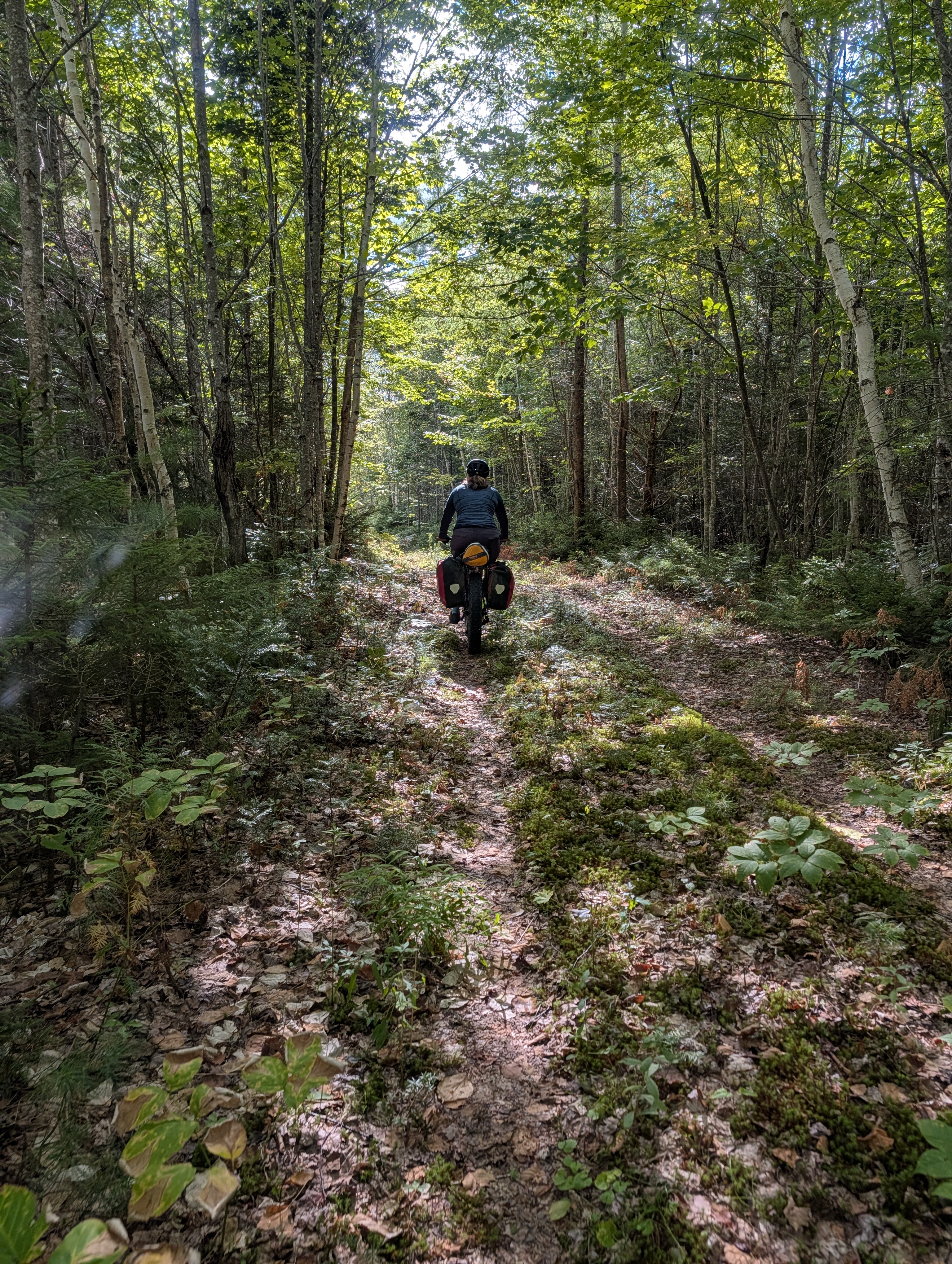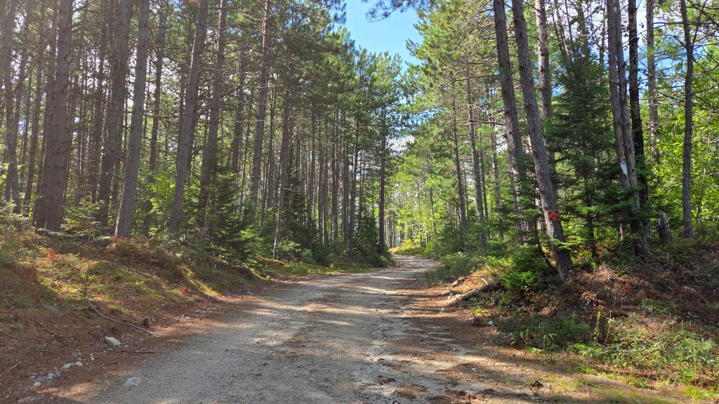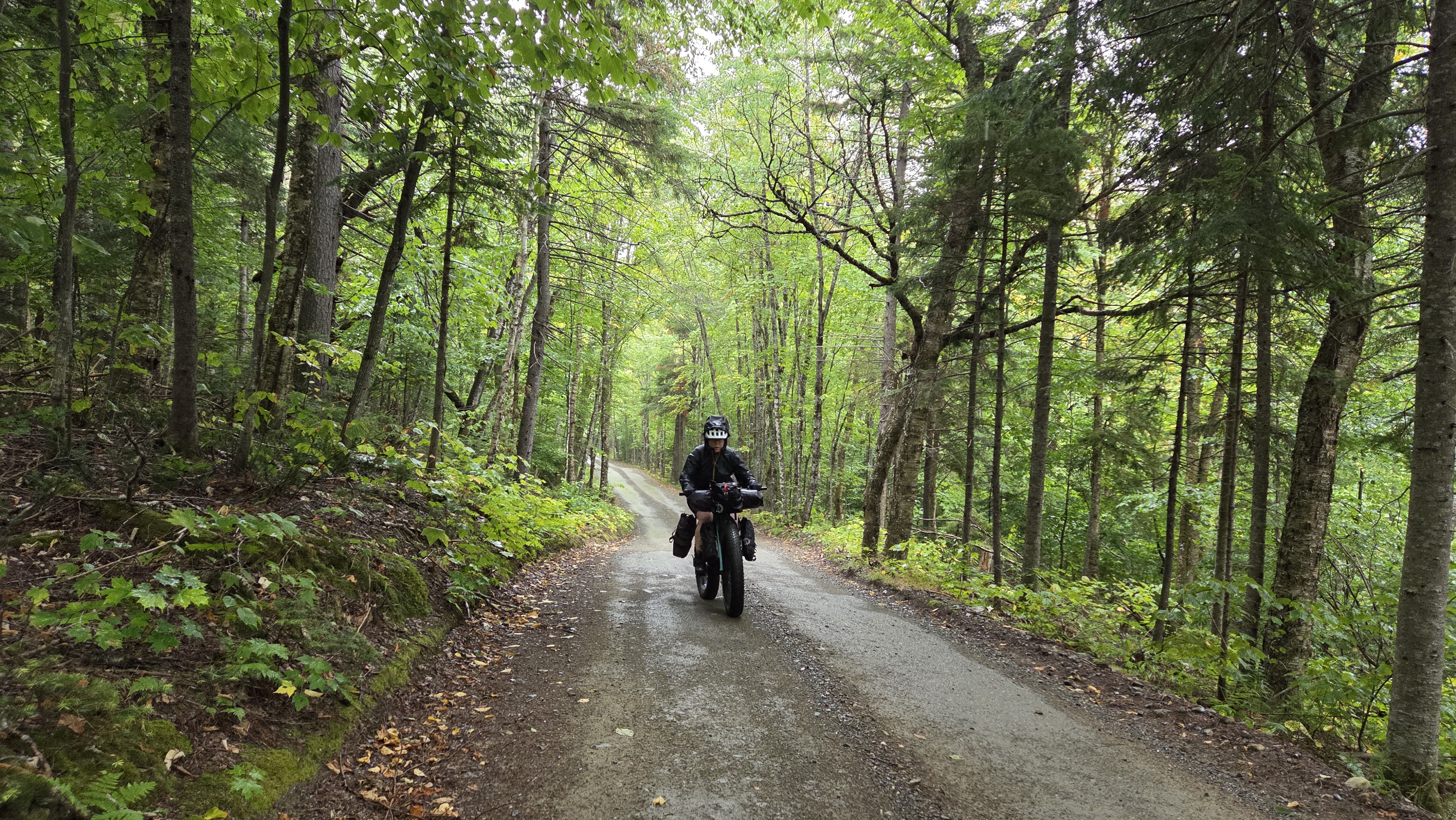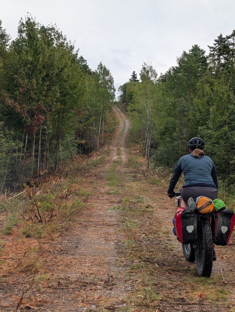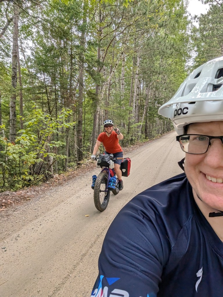 WILDLIFE ENCOUNTER: We’ve been on “Moose Watch” the whole time – every time we see a logged lane or a swampy area, we scan for moose. No luck. So we’re happily motoring along on a wide, open logging road when we hear a branch crack, leaves shake, and something dark drop. We immediately stop and look at each other. Bear or Moose? What do we do if it’s a moose? Bear spray works on moose, right? Ashley takes out the bear spray and we stand there for a few minutes assessing the situation before deciding to high-tail it down the road. Nothing chased us but we had a good spike in our heart rate for a moment.