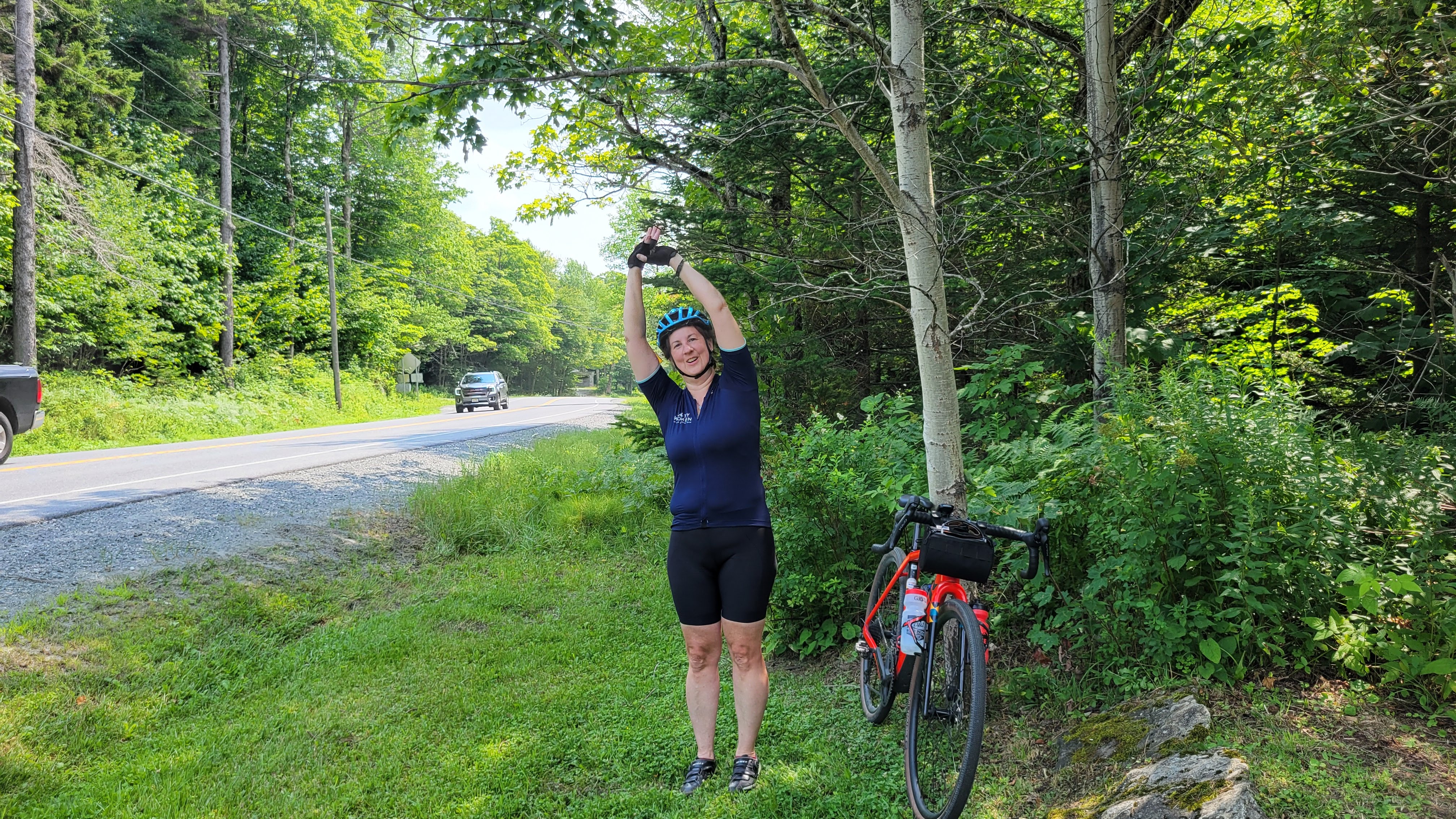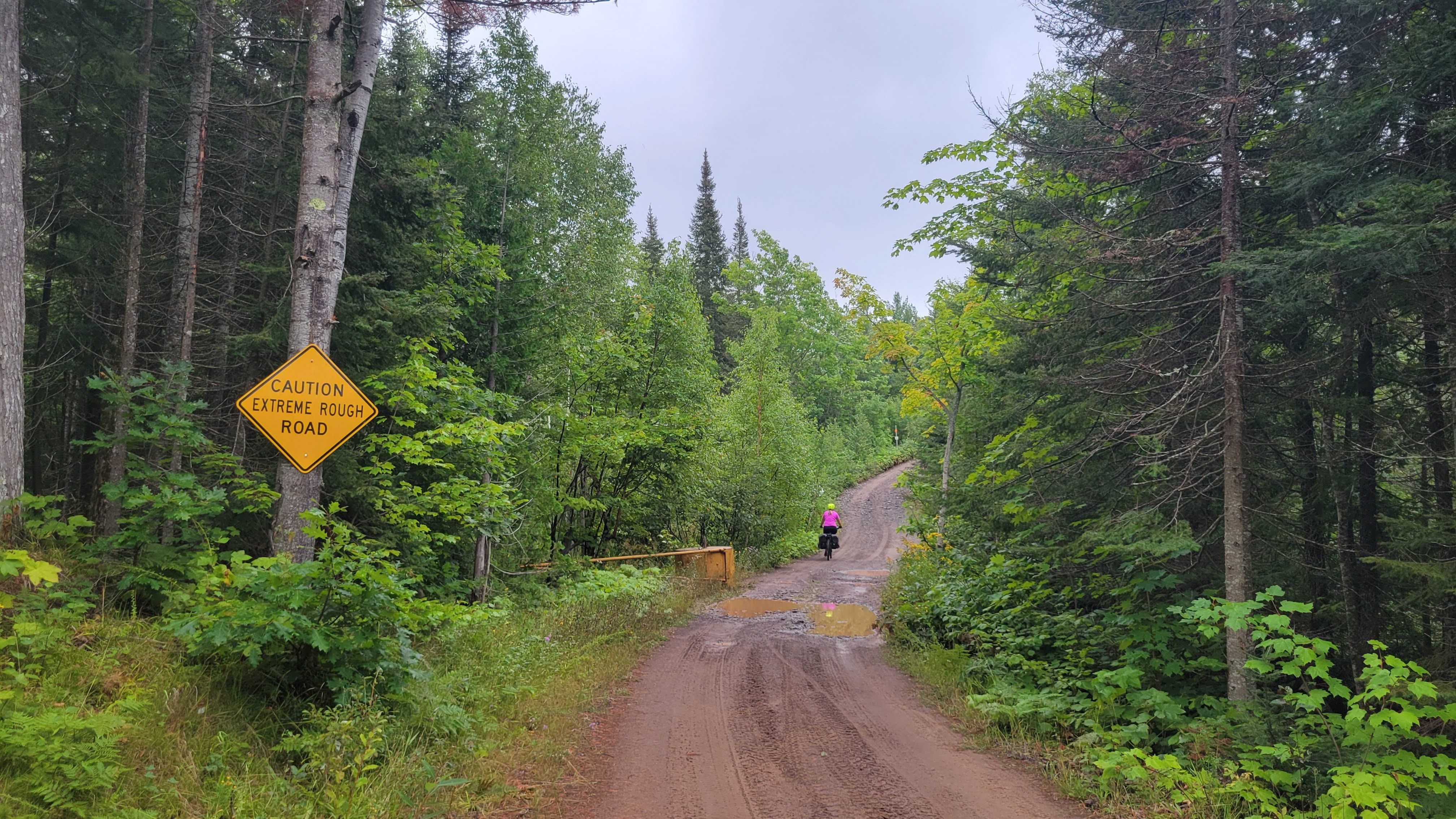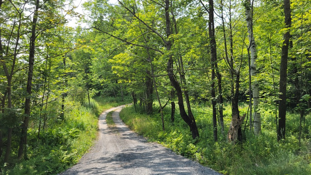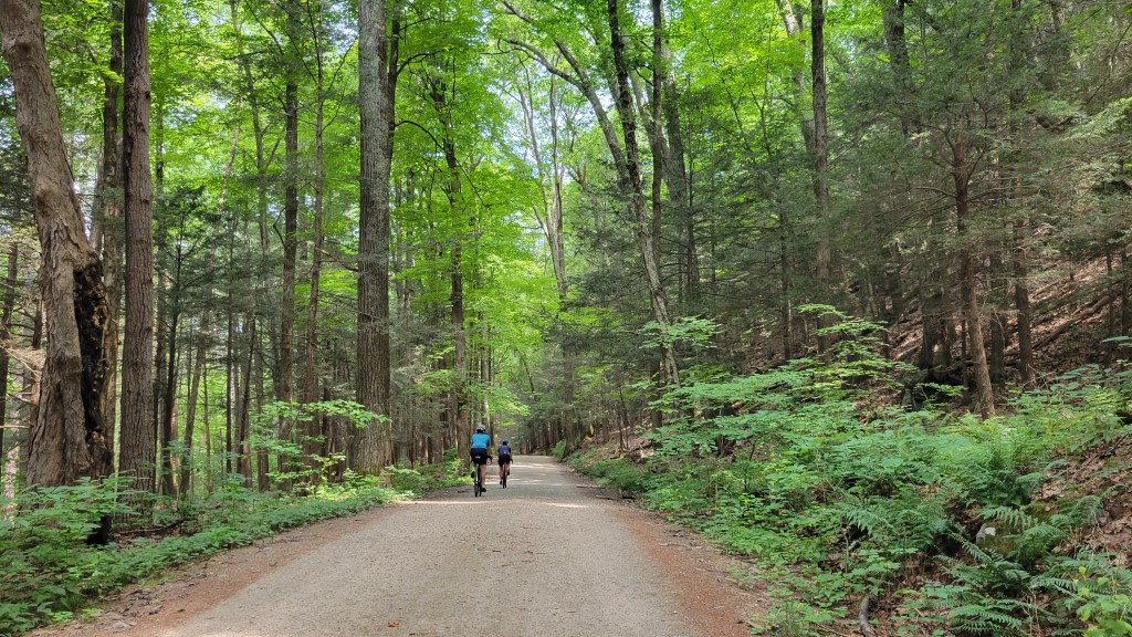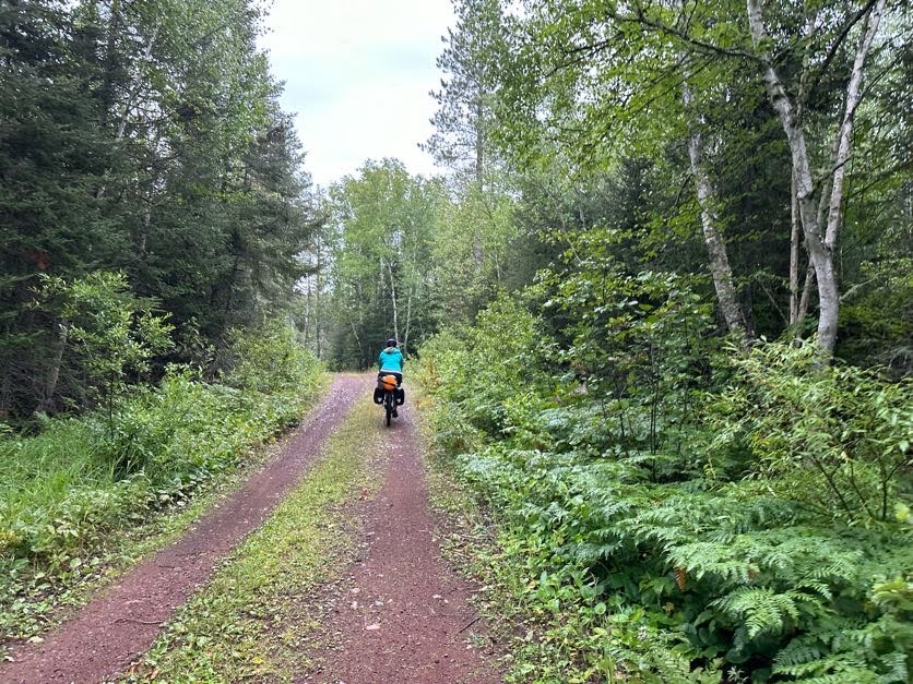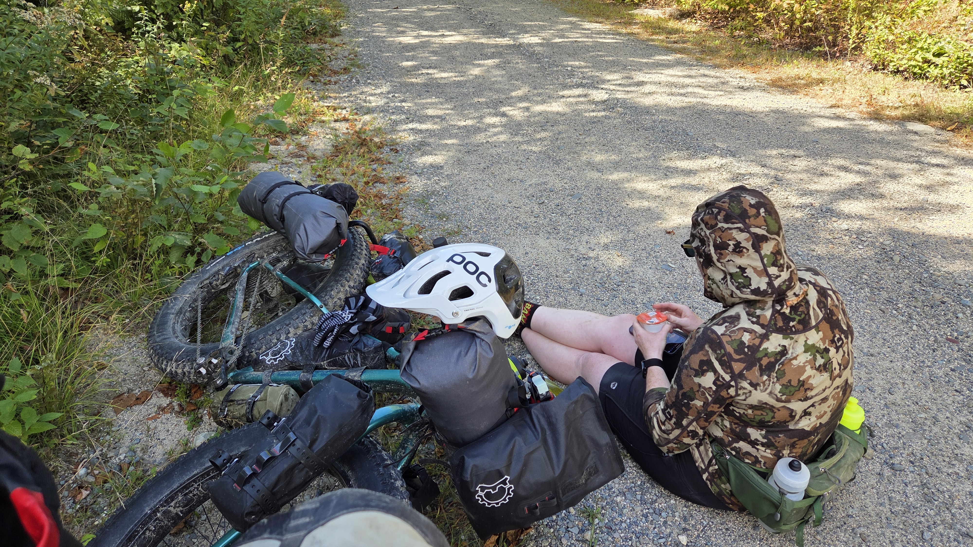 WILDLIFE ENCOUNTER: We’ve been on “Moose Watch” the whole time – every time we see a logged lane or a swampy area, we scan for moose. No luck. So we’re happily motoring along on a wide, open logging road when we hear a branch crack, leaves shake, and something dark drop. We immediately stop and look at each other. Bear or Moose? What do we do if it’s a moose? Bear spray works on moose, right? Ashley takes out the bear spray and we stand there for a few minutes assessing the situation before deciding to high-tail it down the road. Nothing chased us but we had a good spike in our heart rate for a moment.