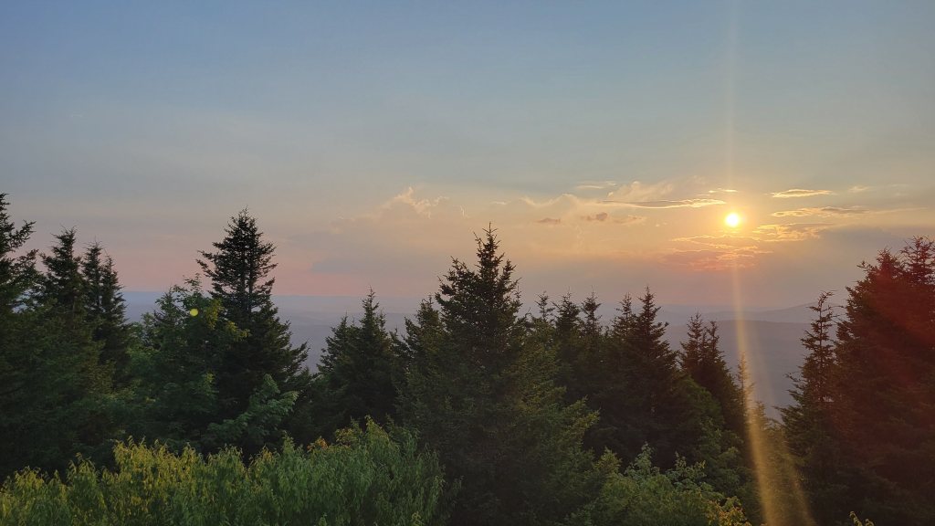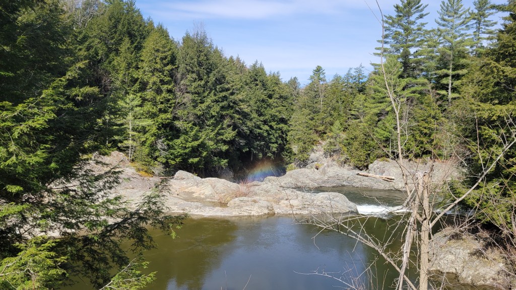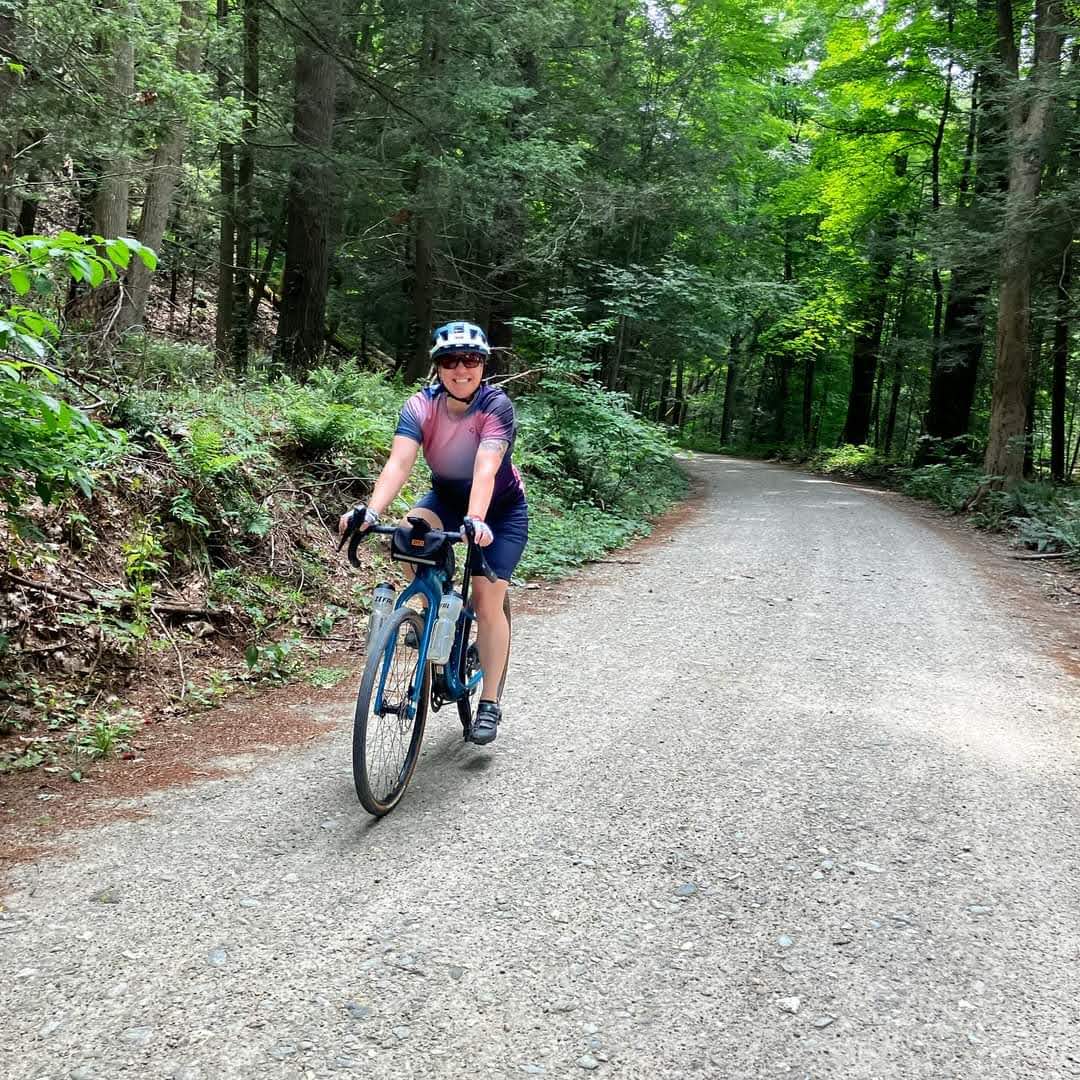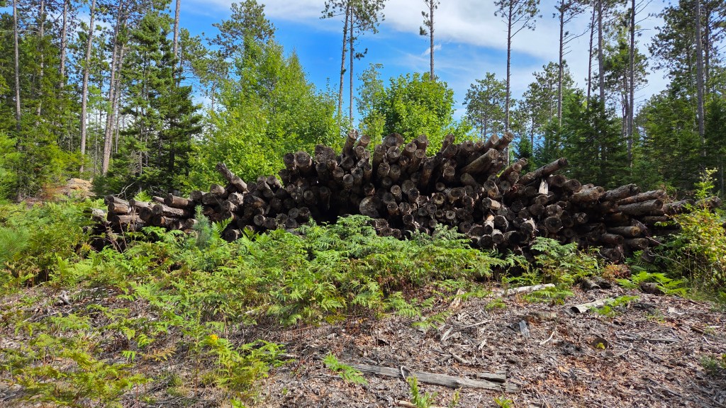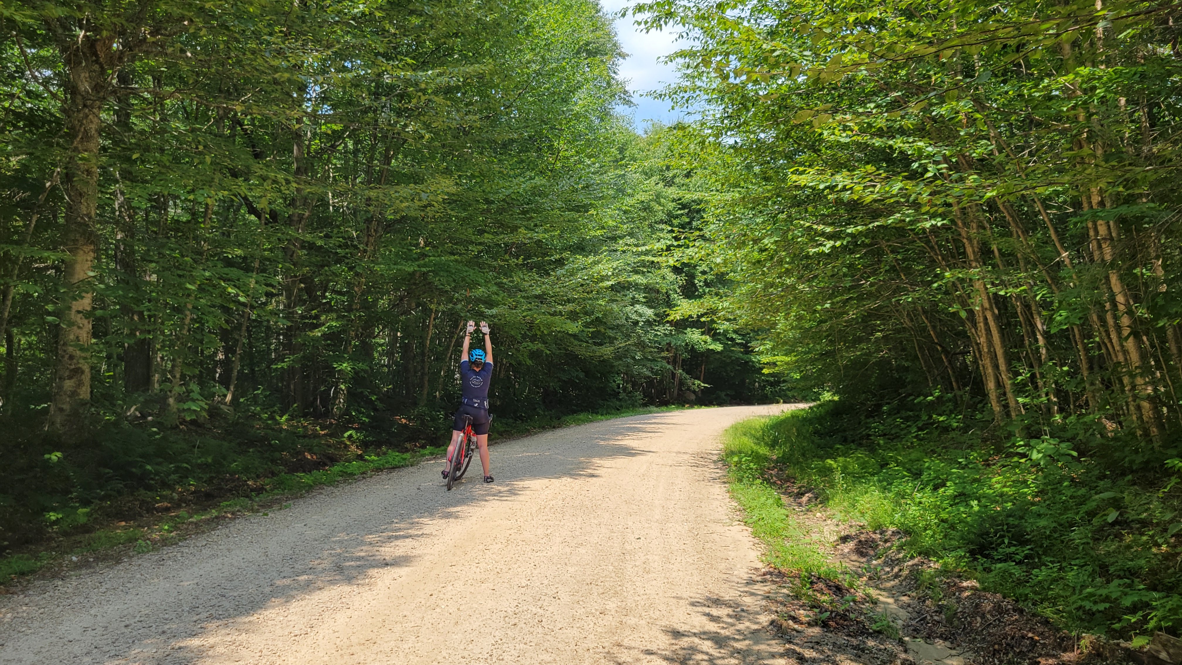 WILDLIFE ENCOUNTER: We’ve been on “Moose Watch” the whole time – every time we see a logged lane or a swampy area, we scan for moose. No luck. So we’re happily motoring along on a wide, open logging road when we hear a branch crack, leaves shake, and something dark drop. We immediately stop and look at each other. Bear or Moose? What do we do if it’s a moose? Bear spray works on moose, right? Ashley takes out the bear spray and we stand there for a few minutes assessing the situation before deciding to high-tail it down the road. Nothing chased us but we had a good spike in our heart rate for a moment.