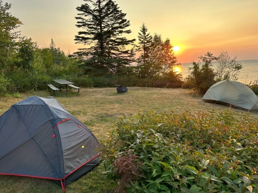 We basecamped at the New England Outdoor Center – Penobscot, reserving a 4-person canvas tent for the week so we could have a place to start close to the park, hot showers when we returned, and a place for our cars to be during our trip. Also, their Twin Pines campus has two restaurants (River Drivers and Knife’s Edge) making it easy to get a bite and back to camp fairly quickly.