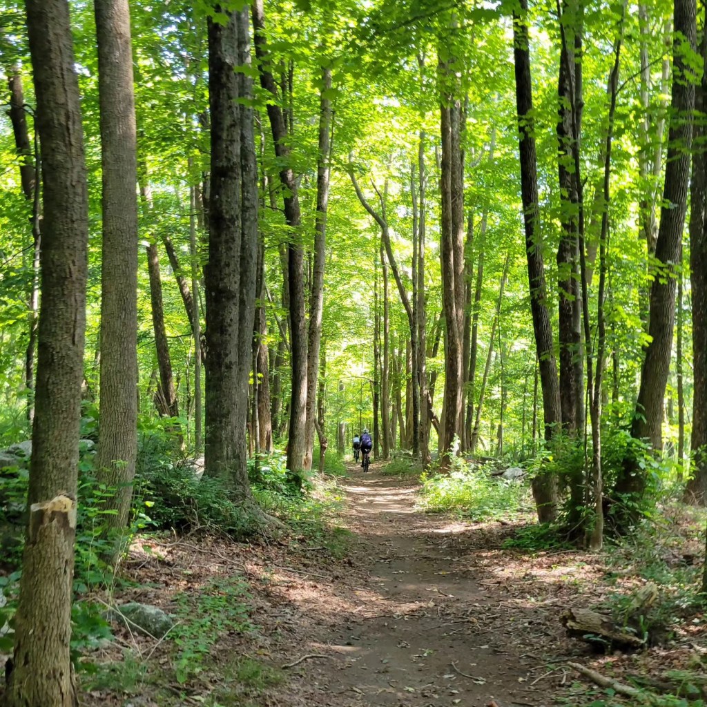 As with any day two, the legs are a touch stiffer and hills a bit slower – especially with 4″ tires and heavy loads. We enjoyed the solitude and lack of civilization, pedaling along dirt roads to two track to slick, mossy singletrack. We crossed the suspension bridge and found a spot to stop for lunch.