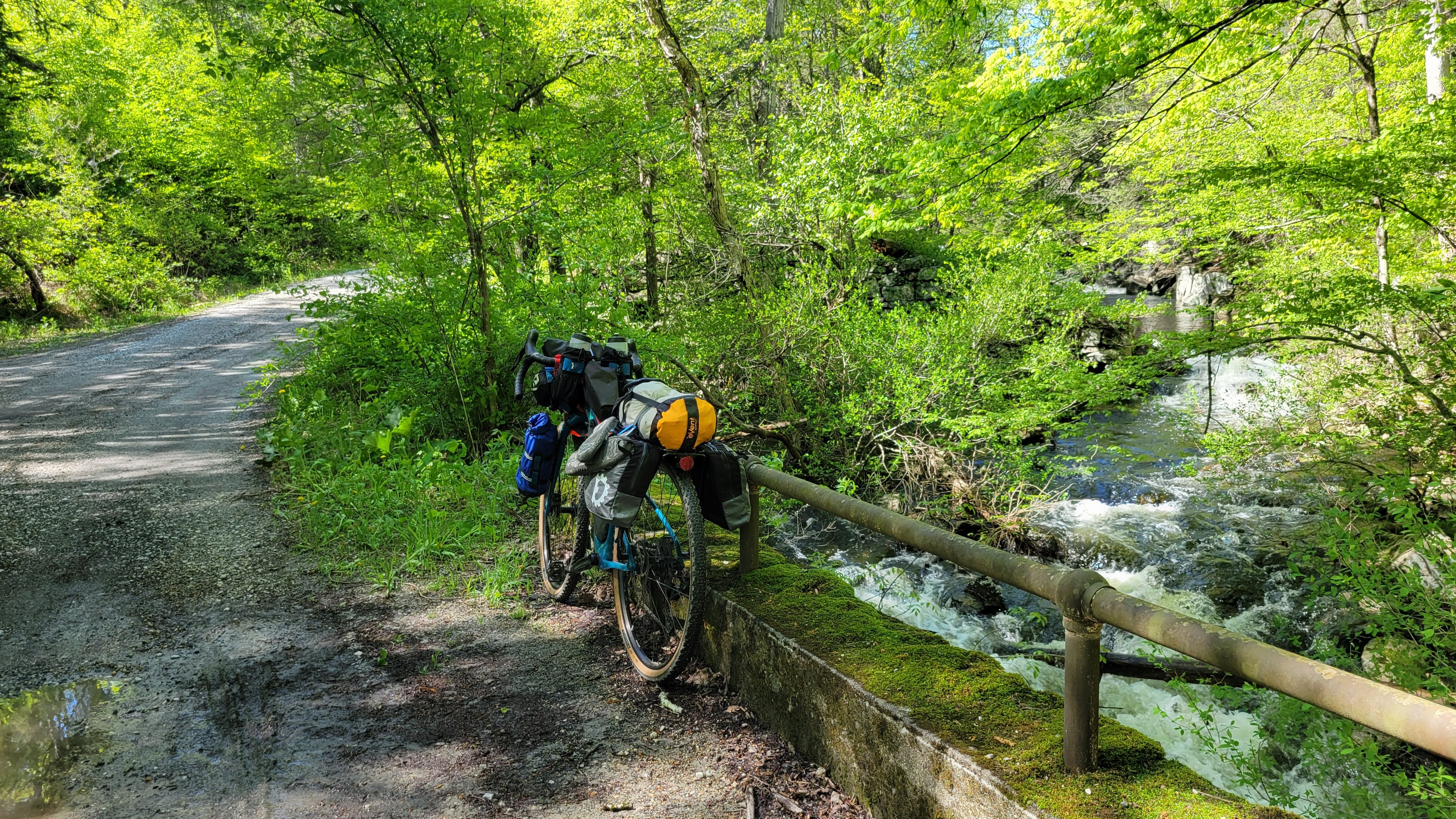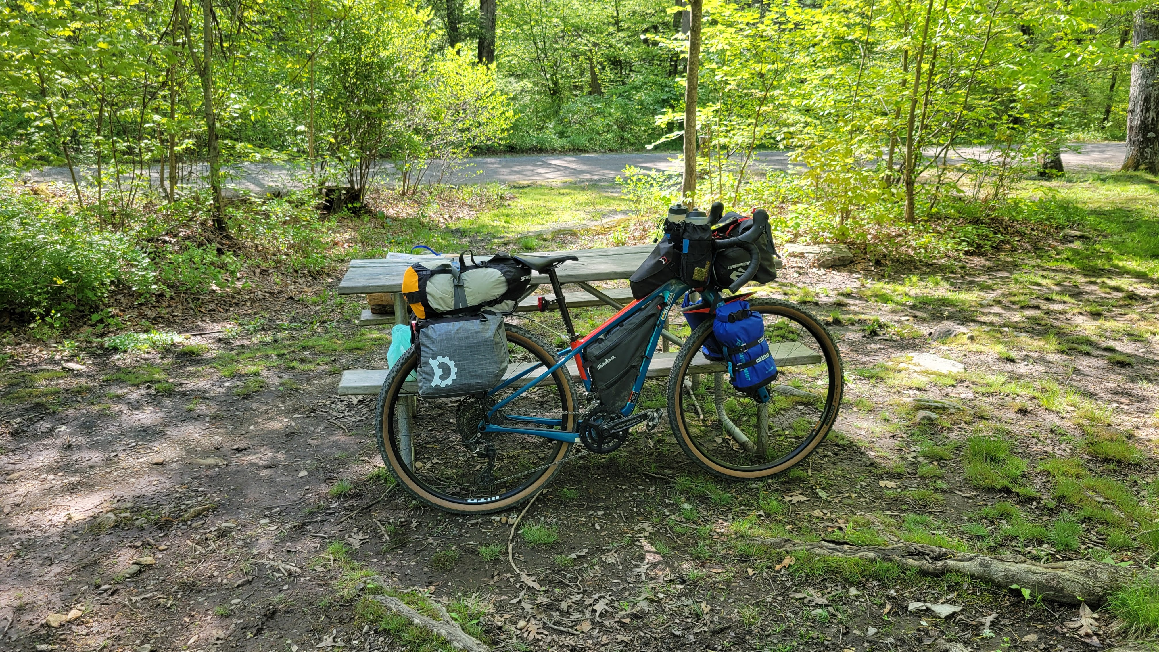 Day One is usually a more relaxed morning as we savor our morning coffee and load the bikes for the first time. We finally headed out around 10:30 a.m. under partly sunny, humid conditions. Almost immediately, my rear rack disassembled itself from the weight. Thankfully, it was a quick fix, and we were back in business in less than 5 minutes.