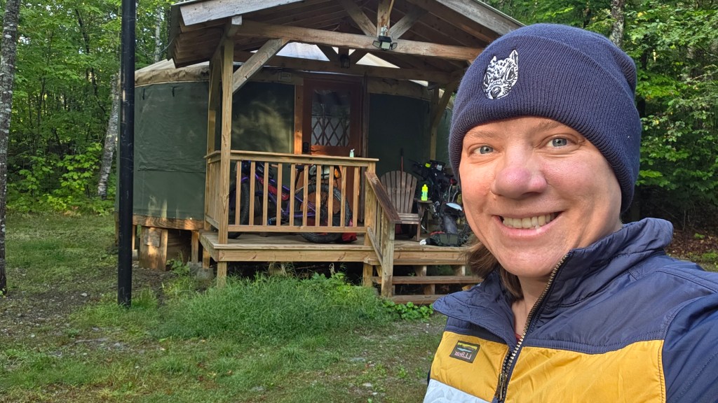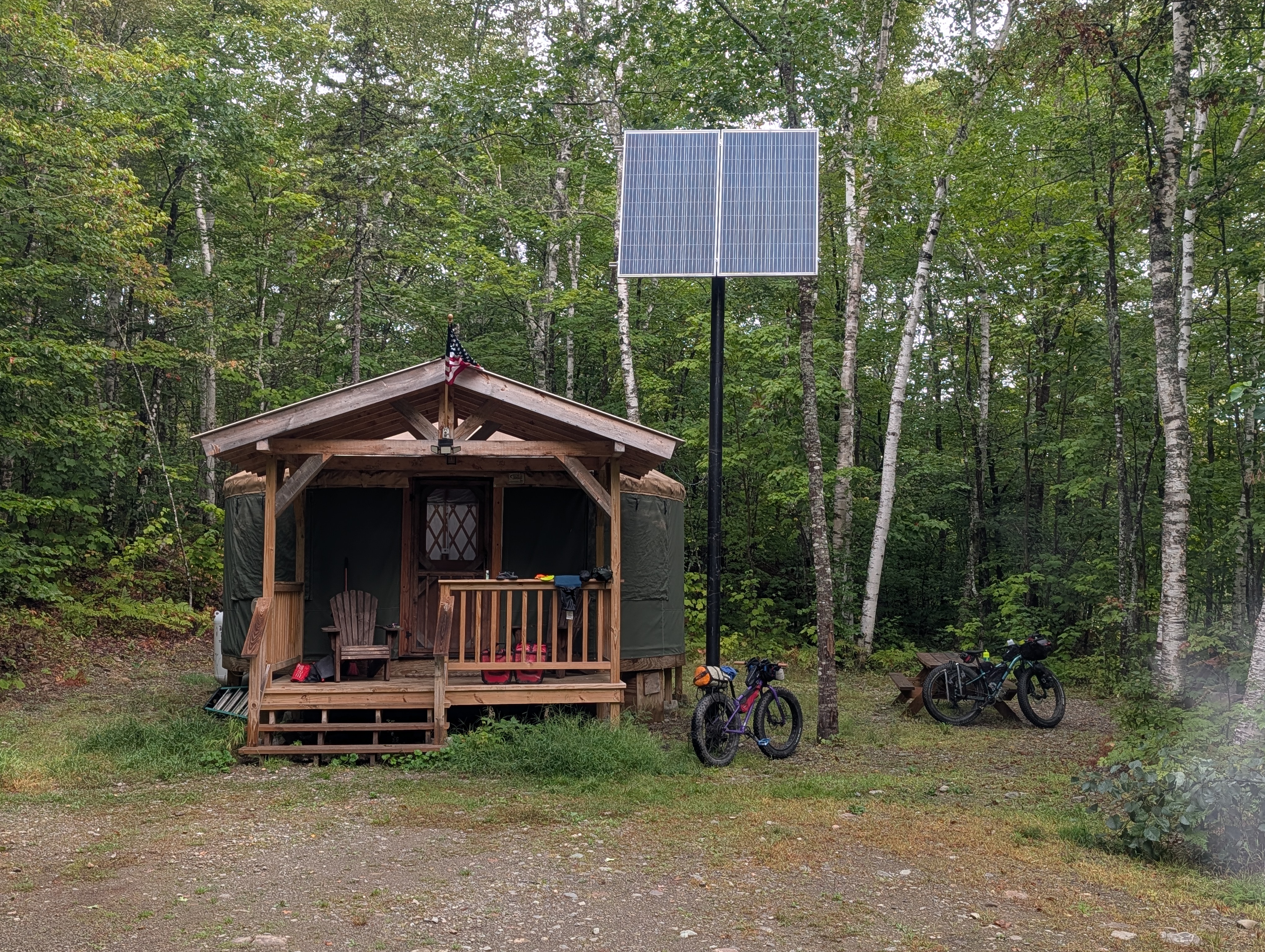 A few miles later, we roll into Matagamon Wilderness Campground for the night. Months ago, we had called to reserve a tent site, but as the weather forecast solidified before we headed up, I made the executive decision to see if we could book a cabin or other indoor accommodations. We were able to reserve the yurt, which ended up being perfect for us.