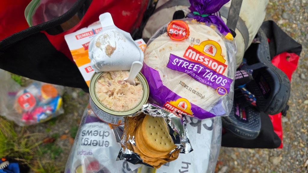 I also am reminded that bringing a spare kit is crucial. Everything I was wearing on Saturday was soaked through and we did not have the means to get everything completely dry. If I didn’t have a second set of riding shorts, shirt, and a sunhoodie, days 2 and 3 would have been fighting hypothermia and hoping my clothing dried out. It wasn’t that warm this past weekend – only in the low-60s and breezy.