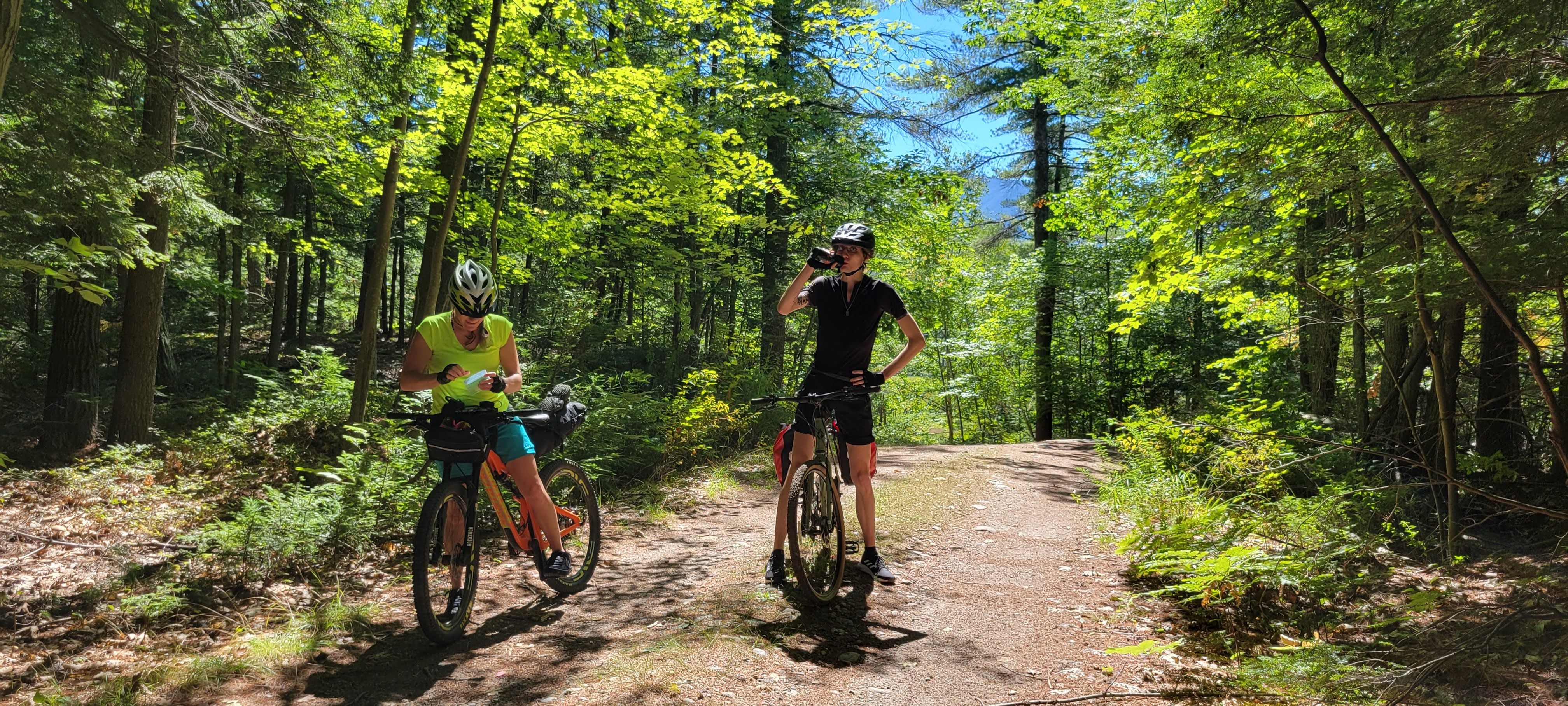 WILDLIFE ENCOUNTER: We’ve been on “Moose Watch” the whole time – every time we see a logged lane or a swampy area, we scan for moose. No luck. So we’re happily motoring along on a wide, open logging road when we hear a branch crack, leaves shake, and something dark drop. We immediately stop and look at each other. Bear or Moose?What do we do if it’s a moose?Bear spray works on moose, right? Ashley takes out the bear spray and we stand there for a few minutes assessing the situation before deciding to high-tail it down the road. Nothing chased us but we had a good spike in our heart rate for a moment.