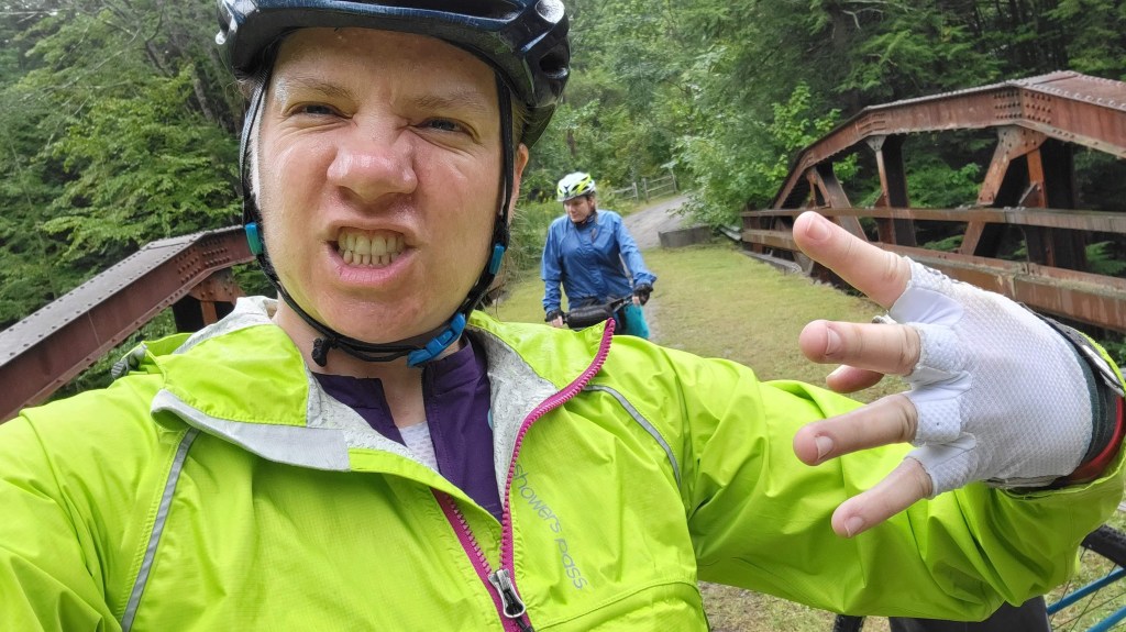 It’s early August. I’ve completed two multi-day bikepacking trips, including the beautiful and challenging Appalachian Gravel Growler and another spin Roundabout Brattleboro. I camped in 10* on my back porch to test out my new (obscenely expensive, expedition-weight) winter sleeping bag in anticipation of a back-/bikepacking winter overnight. I missed Toad Strangler due to illness and rode (a shorter route for) The Great North in cold, rainy conditions. I went cabin camping and mountain biking in beautiful New Hampshire and Vermont with my girlfriends (and Matt).