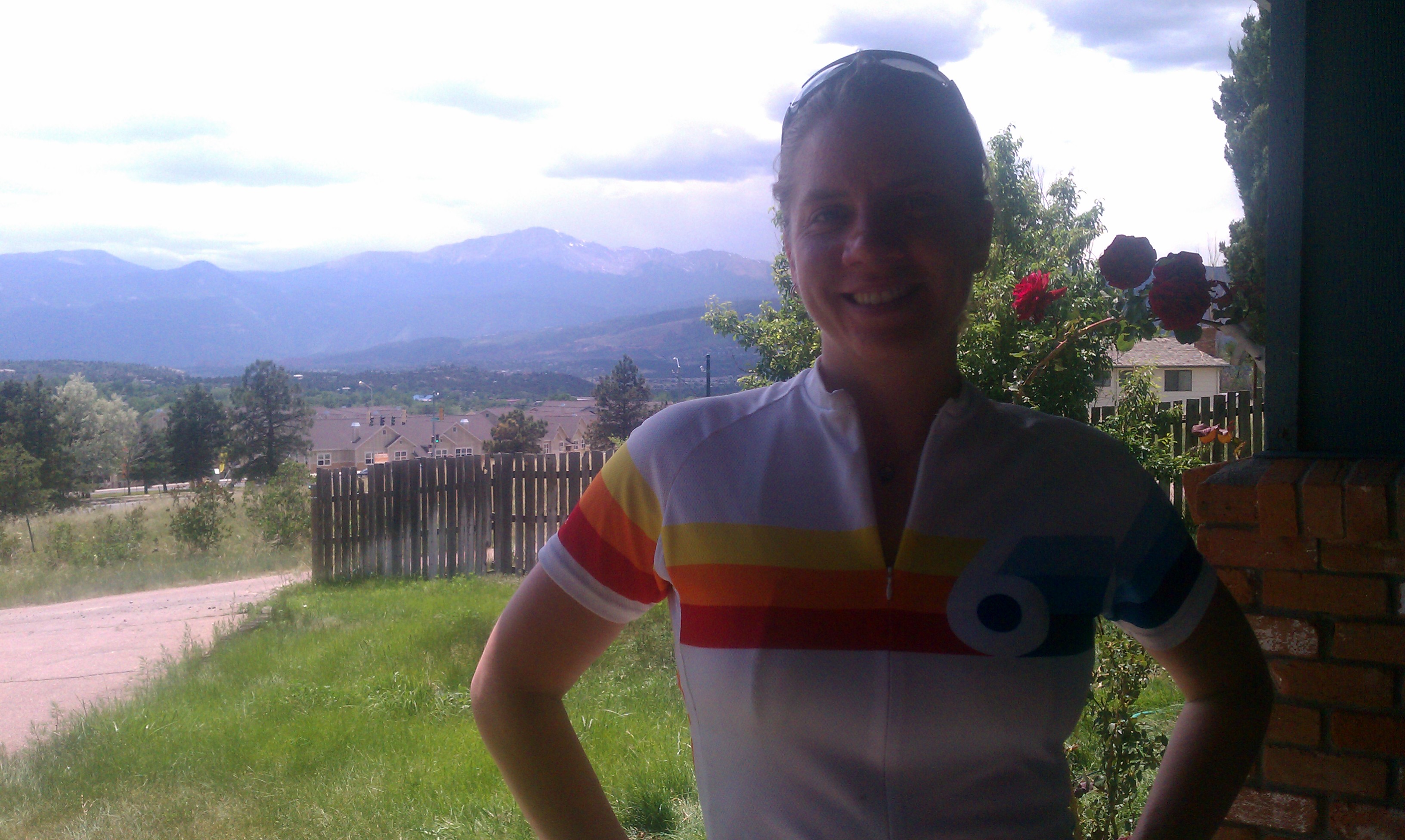 We stopped at the 15mi rest stop – me for real food (since I hadn’t eaten anything yet for fear of losing it), my sister for a way to close the hole in the front seam of her bike shorts (she got a safety-pin). A gentleman commented that “you don’t have views like this in Philadelphia” referring to the amazing view of Pikes Peak in the background. I swear I said a inflection-neutral “nope” but my sister will tell you I growled at him and was generally hostile. All I remember is nibbling on a banana and sour green grapes and pacing around, trying not to puke. And the wind again.