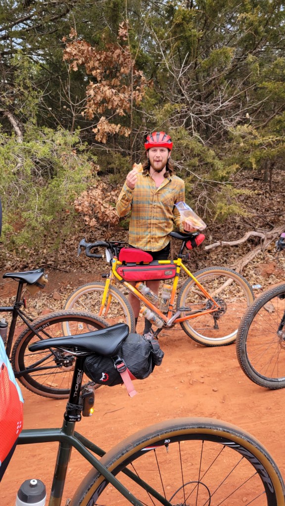 If I’m being honest, I can’t really tell you about the ride. It was people on bikes on stunning red dirt roads, all moving in the same direction but at different speeds. Some had mechanical issues and sitting beside fences, waiting for the SAG jeep. Some were taking a break to eat or drink. Despite registering solo and knowing exactly one other person who had signed up (among the 2500+ registrants across all categories and events) …. I was never alone.