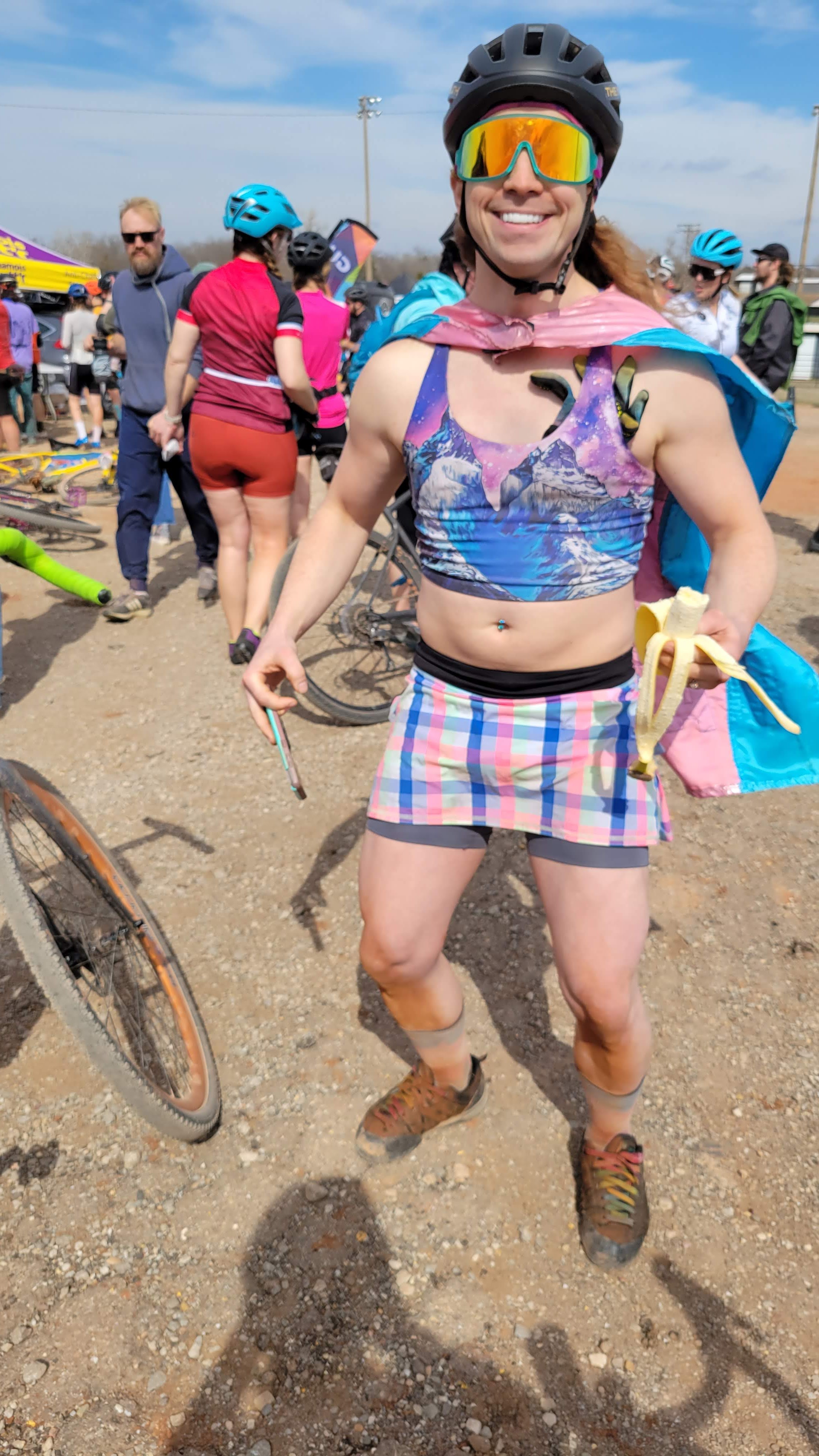 Kenneth, a queer Latine, who chatted with me while we were filling our water bottles. He then came over to take photos with my sister and her family (who had dressed in character onesies so I could find them easier at the mid-point aid station). We caught up again at Mount Butt’r.